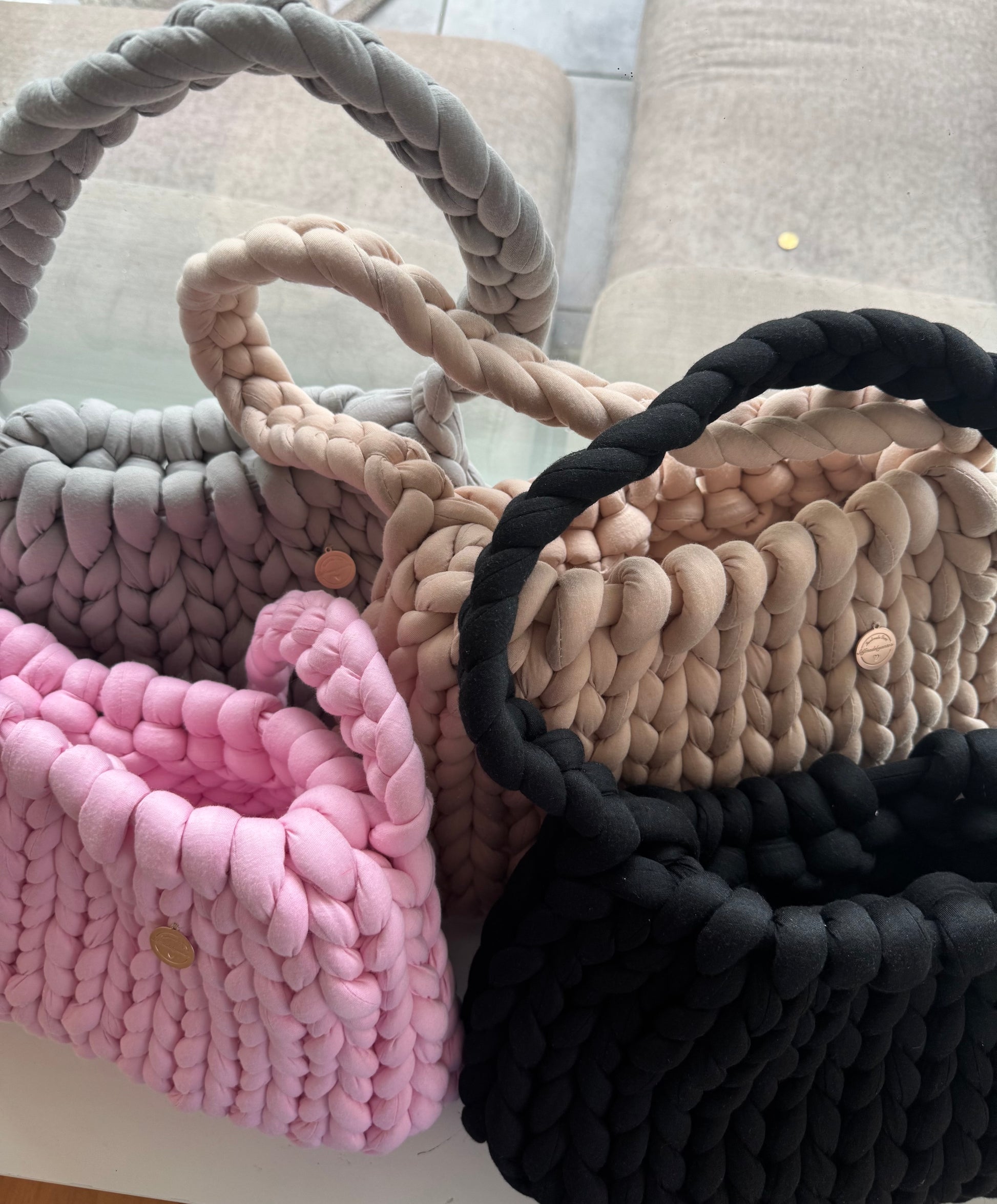 Die handgemachte Chunky Yarn Bag überzeugt mit ihrer auffälligen Strickstruktur, der soften Haptik und dem eleganten Design. Durch das voluminöse Garn wirkt sie modern und edel zugleich. Ideal für alle, die Wert auf Stil und Qualität legen.